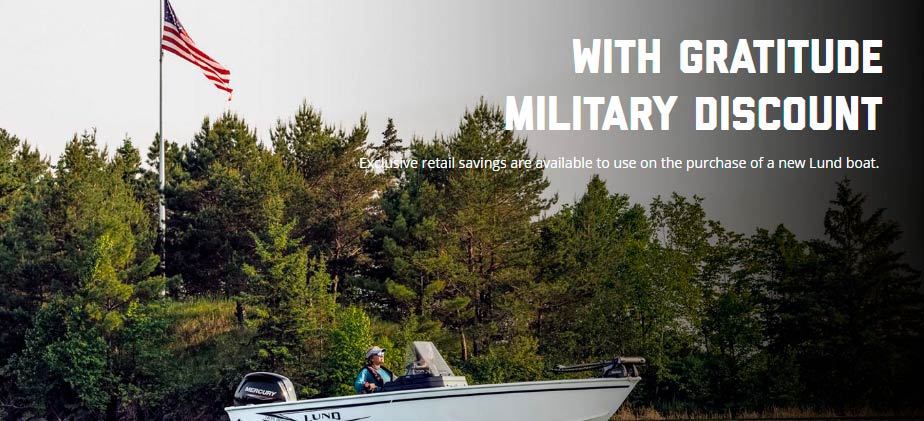 Eligible U.S. and Canadian military members—including active-duty service members, honorably discharged veterans, and immediate family of fallen heroes—get savings on select Lund models.